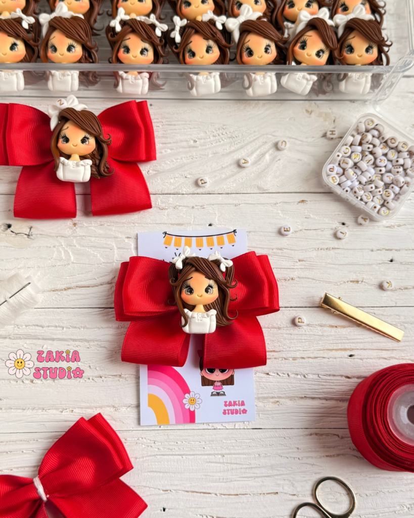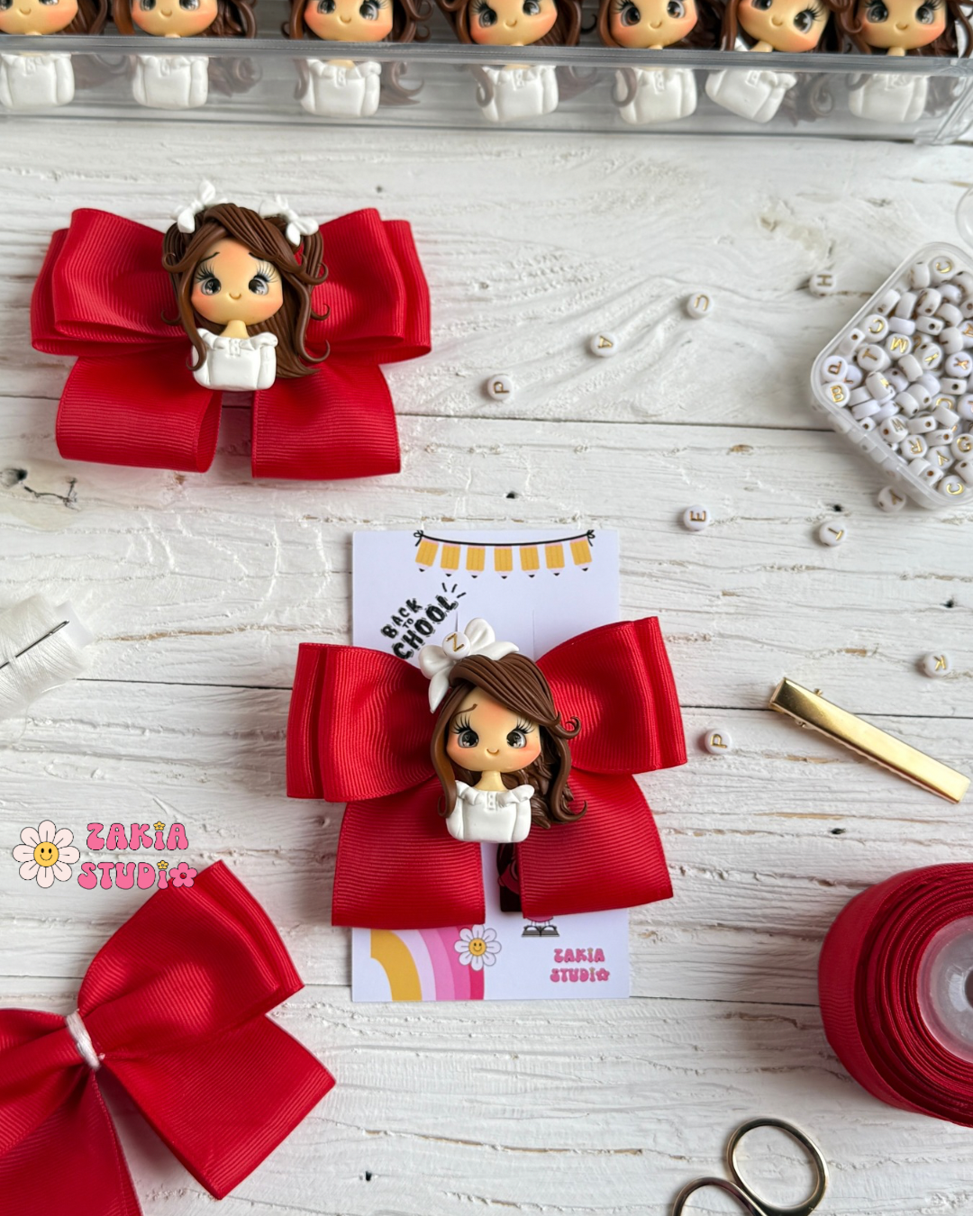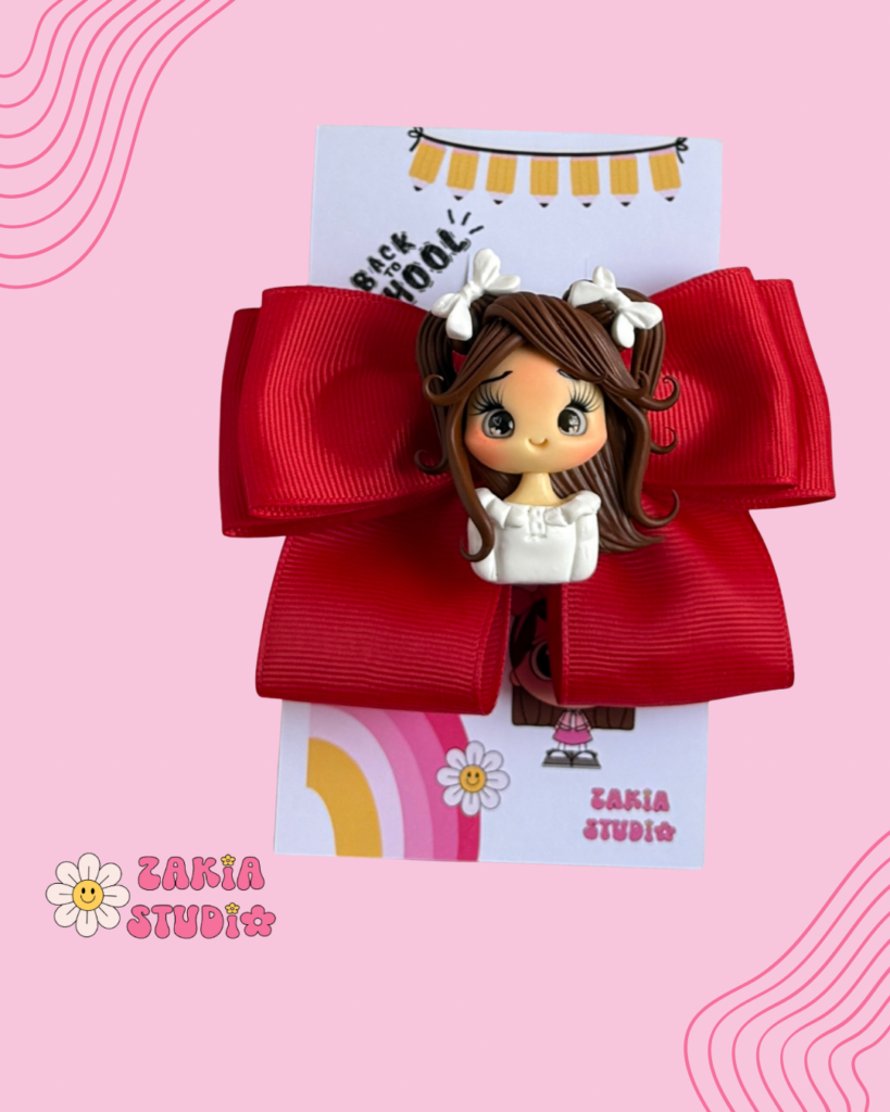 فيونكة العودة للمدارس باللون الأحمر، أنيقة وتناسب الزي المدرسي الحكومي .